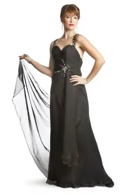 Toto krásne šaty Jovani má iba veľké množstvo ozdôb od skromného výstrihu po spodnú časť sukne. Boky sú sukne pevnej, elegantnej čiernej farby a z nej vyniká sofistikovanosť so zjednodušeným dizajnom, ktorý sa vyznačuje skromným predným panelom a štýlom bez rukávov a bez chrbta. Nájdete ju v miestnom obchode Jovani, pretože požiadajte miestny obchod, aby si ju objednal za približne 1300 dolárov. Je k dispozícii vo veľkostiach dva až 24.