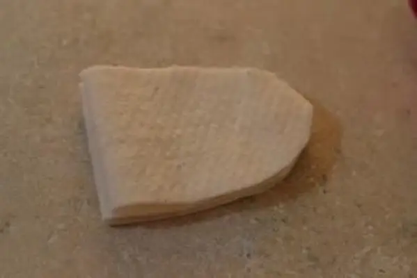 - Ústa, ktoré pílite, vás povedú pri prerezávaní rovnako veľkého oválu z rúna. Potom odrežte kúsok kartónu, ktorý je o niečo menší ako oválny rúno. Kartotéku preložte na polovicu a potom ju rozložte. Na kartón naneste lepidlo a oválny kartón zatlačte nadol na oválny rúno.