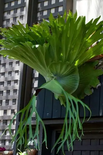 : Aj keď tento druh bežne rastie na kôre stromov v Ázii, Afrike a Austrálii, je to dobrá izbová rastlina, ak je vysadená v drsnej pôde s dobrým odtokom. Rastlina má dve sady listov. Zelené listy sú plodné, pripomínajú rohy jeleňov, na spodnej strane majú spory a dorastajú až do dĺžky štyroch stôp. Hnedé neplodné listy rastú mimo zelené a sú krátke, ploché a okrúhle.